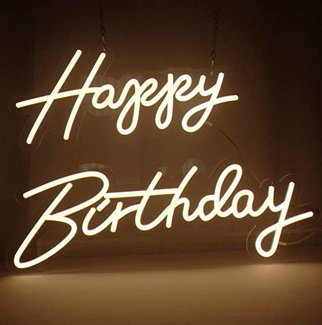 Neon "Happy Birthday" sign used in combination with the sequin curtain £30