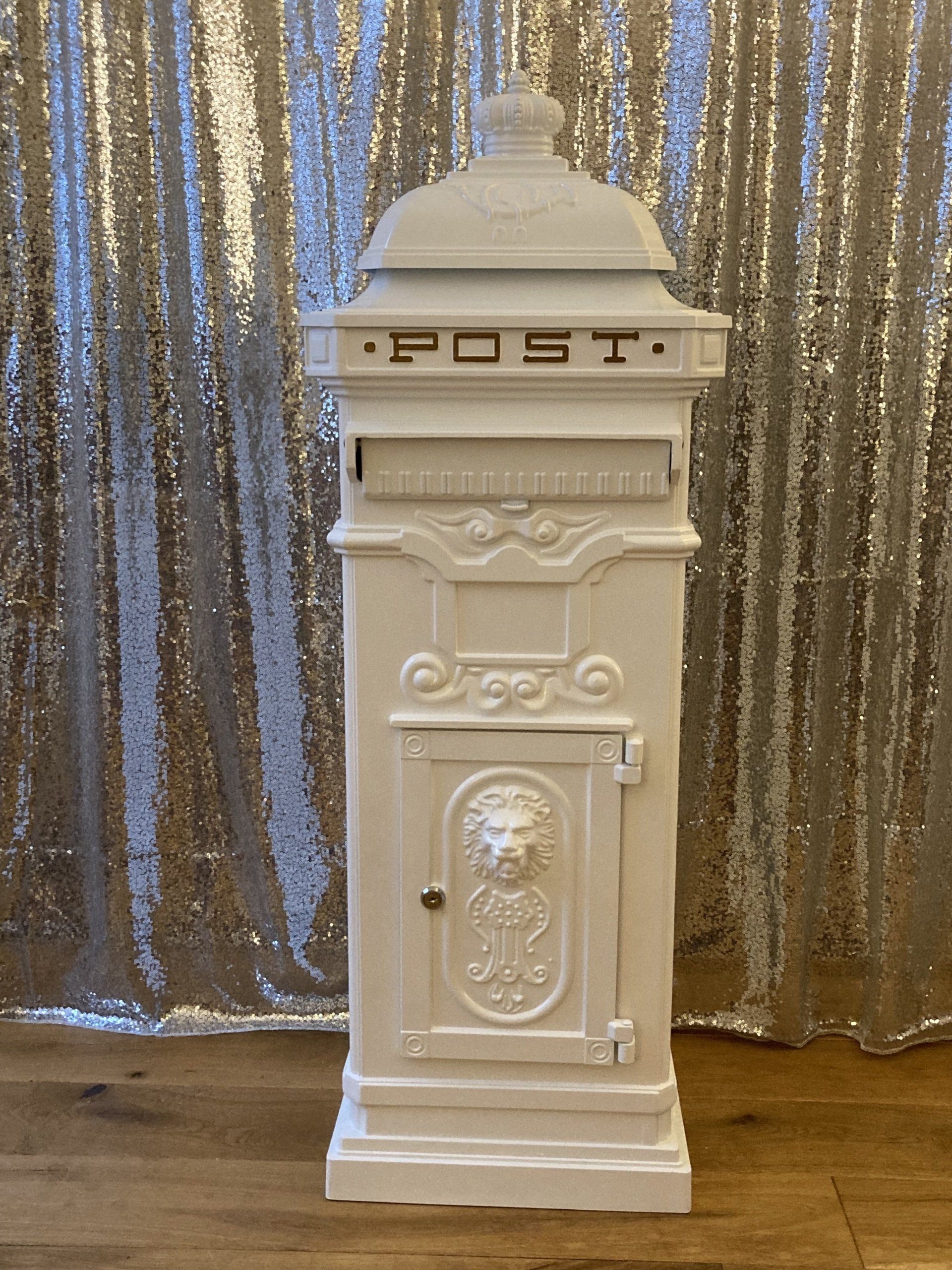 Our white acrylic cake plinth measures 900mm high with a diameter of 400mm. Ideal to display your Wedding or Birthday cake in front of the sequin curtain.
