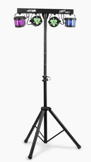 Cake Plinth, Neon "Happy Birthday" sign, Wedding Post Box, LED Disco Light Bars, Smoke Machine, Bubble Machine, PAR can lights & UV lights.